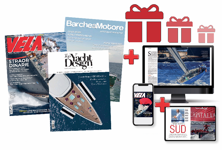 Il destinatario del regalo potrà sfogliare il Giornale della Vela, Barche a Motore, Top Yacht Design digitali su cinque device contemporaneamente.